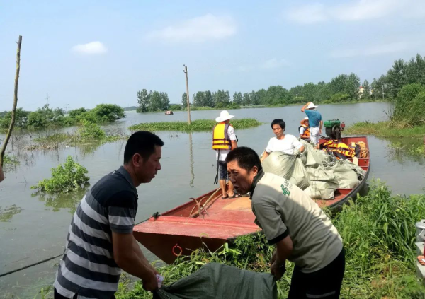9:00,到達轉(zhuǎn)移安置點,都昌縣分公司幫扶人員早早就在那等候。安頓好受災群眾后,我們又一起將周邊幾個圩堤防汛指揮部和受災鄉(xiāng)鎮(zhèn)人員所需的方便面、礦泉水、衣物等必需品和進口郵件一袋袋搬運上船,打包出發(fā)。