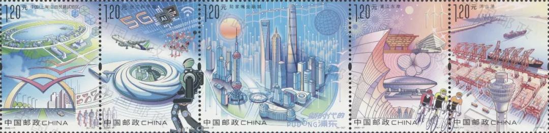 30年來,浦東在一片阡陌農(nóng)田上建成了一座功能集聚、要素齊全、設(shè)施先進的現(xiàn)代化城市,成為我國改革開放的象征和上?,F(xiàn)代化建設(shè)的縮影。歷史是發(fā)展的見證,郵票是時代的剪影。此次發(fā)行的《新時代的浦東》特種郵票,鮮活呈現(xiàn)了浦東勇?lián)鷩覒?zhàn)略、奮進新時代的生動實踐,有力彰顯了中國特色社會主義的強大生命力。郵票一套5枚,選取上海自貿(mào)試驗區(qū)、張江科學(xué)城、陸家嘴金融城、浦江東岸、洋山港等作為表現(xiàn)主題,將浦東日新月異的變化濃縮于方寸之間。
