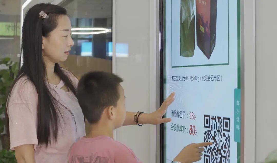 無實物超市的建設依托郵政現(xiàn)有實體渠道,發(fā)揮郵政貨源優(yōu)勢,融合線上與線下,門店承擔商品配送和推介、線上渠道承擔推廣和成單功能,構(gòu)建起網(wǎng)點的零售場景,形成了一個零售新業(yè)態(tài)。它不同于“郵樂小店”APP或者線上微商,具備超市的功能屬性,但不是實時購物的超市。合肥市海恒營業(yè)所覆蓋特色商圈,網(wǎng)點的13塊電子屏滾動展示52款自營大單品和安徽特色農(nóng)產(chǎn)品,成為周邊商戶購物的新場所。上半年銷售商品5萬余元,同比增長11%。