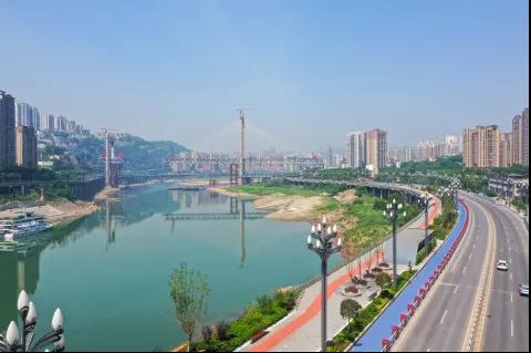 美麗的濱江步道沿著嘉陵江向遠處延展。(重慶市委宣傳部供圖)