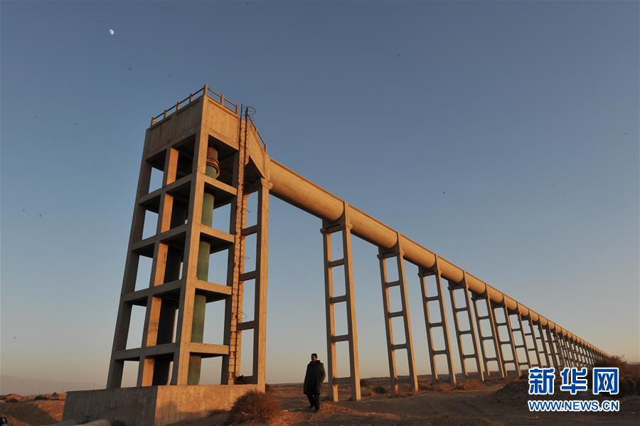 這是位于紅寺堡境內的寧夏扶貧揚黃灌溉工程泵站輸水管道(2009年12月27日攝)。 新華社記者 王鵬 攝