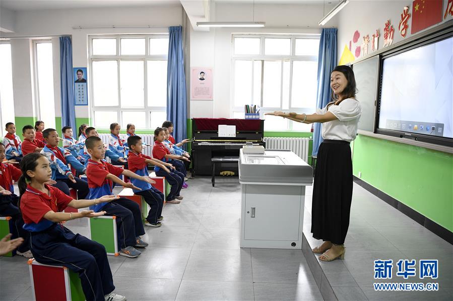 寧夏吳忠市紅寺堡區(qū)紅寺堡中心小學學生在上音樂課(7月3日攝)。 新華社記者 馮開華 攝