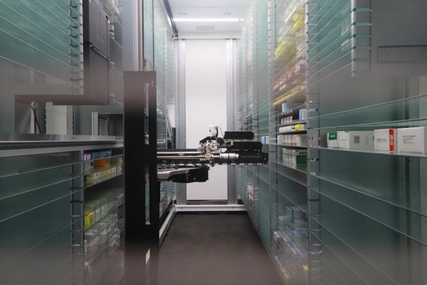 為何叫“智慧藥房”,其智慧又體現(xiàn)在何處?記者發(fā)現(xiàn),有別于傳統(tǒng)線下零售藥房,近150平方米的大廳,少了一排排貨架,多了觸摸屏等自助服務(wù)終端和一個(gè)貯有12000多盒藥品的冷鏈庫(kù)房。透過庫(kù)房櫥窗玻璃,記者看到一個(gè)機(jī)械臂正在迅速敏捷地循環(huán)往復(fù)進(jìn)行配藥出藥,其原理是根據(jù)前臺(tái)發(fā)出的電子處方,通過激光實(shí)現(xiàn)精準(zhǔn)定位,最快只需15秒即可完成配藥。記者還了解到,智慧藥房使用的全自動(dòng)發(fā)藥機(jī),系全國(guó)藥品零售藥房第一臺(tái),該設(shè)備主要用于醫(yī)院。