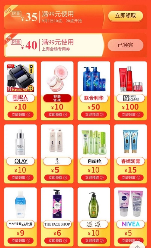 可領(lǐng)取50減10及30減5專場優(yōu)惠券