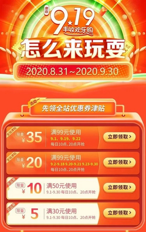 燃爆9月!郵政919豐收歡樂購讓你連嗨1個(gè)月!