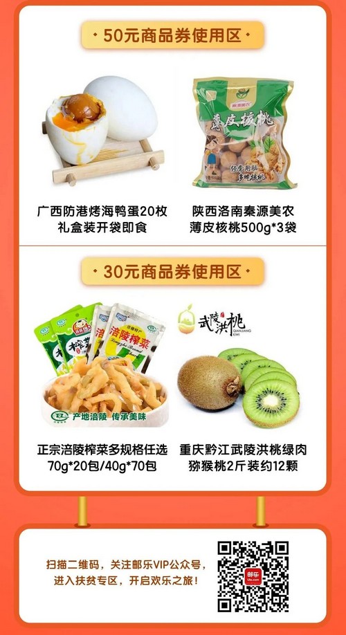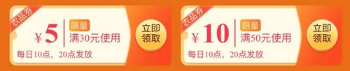 可搶50減10及30減5農(nóng)品優(yōu)惠券