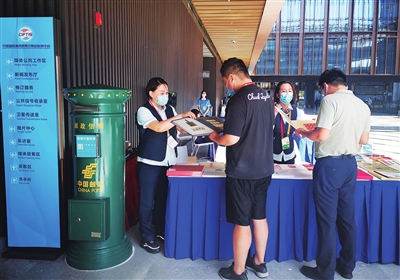在文化服務(wù)專題展區(qū),北京郵政商業(yè)信函局帶來(lái)了聲音明信片打印機(jī),參觀者紛紛上前體驗(yàn),場(chǎng)面十分熱鬧?!安僮鞣浅7奖?,只需要掃碼選擇自己喜歡的照片作為明信片圖案,再按照提示進(jìn)行錄音,就可以拿到一枚專屬的明信片?!眲偰玫铰曇裘餍牌膹埮颗d奮地告訴記者,這枚明信片上印有二維碼,只需掃碼就可以聽到剛剛錄制的聲音。