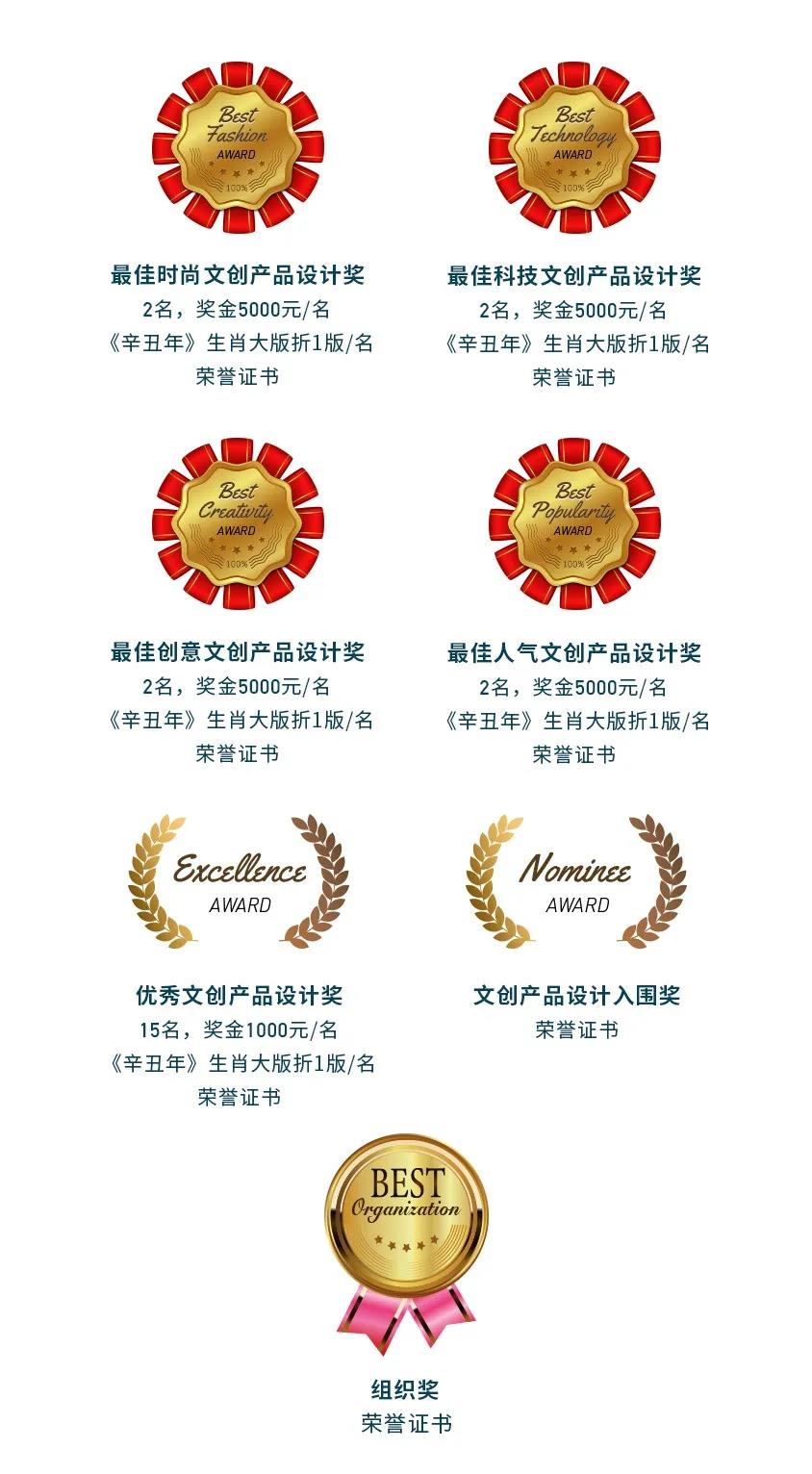本次賽事還設(shè)立了最佳時(shí)尚獎(jiǎng)、最佳科技獎(jiǎng)、最佳創(chuàng)意獎(jiǎng)、最佳人氣獎(jiǎng)和優(yōu)秀獎(jiǎng)等眾多獎(jiǎng)項(xiàng),中國(guó)郵政將扶植大賽優(yōu)秀項(xiàng)目,使獲獎(jiǎng)作品優(yōu)先轉(zhuǎn)化為具有市場(chǎng)價(jià)值的官方文創(chuàng)產(chǎn)品,實(shí)現(xiàn)商業(yè)化運(yùn)營(yíng),還將選擇所有獲獎(jiǎng)且具備商業(yè)化推廣潛力的產(chǎn)品,將其列入中郵文創(chuàng)孵化項(xiàng)目。作品作者均將獲得郵政文化資源、項(xiàng)目資金、渠道營(yíng)銷等多方面支持。