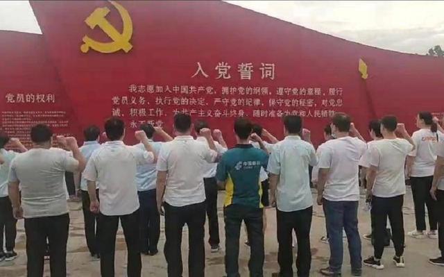 黨員在和陽(yáng)廣場(chǎng)重溫入黨誓詞,黨員在和陽(yáng)廣場(chǎng)參觀主題黨建主題公園。周麗娟 攝