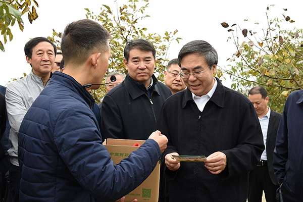 圖為2019年10月17日,劉愛力一行來到陜西商洛進行實地調(diào)研,了解集團公司定點扶貧項目的進展情況。