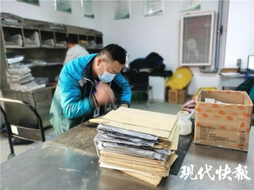 “干了快13年了,每天都要有四五個(gè)小時(shí)是在干這個(gè),熟能生巧?!崩钤鞲嬖V記者,從2008年開(kāi)始,他每天早晨7點(diǎn)半左右就會(huì)到公司這里開(kāi)始分揀包裹、信件,在正式送件之前,他有一個(gè)半小時(shí)的時(shí)間把每天要送的報(bào)刊、信件、包裹分類好,蓋上郵戳。