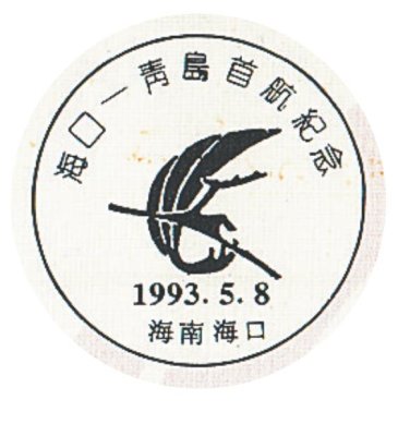 1993年5月8日,海南省航空公司開通了往返于海口和青島的直達(dá)航線,航程2500公里,每周六飛行一班。這條航線的開通對海南經(jīng)濟(jì)騰飛起到了積極的作用,進(jìn)一步促進(jìn)了兩市之間的政治、經(jīng)濟(jì)和文化的交流。??谑朽]票公司聯(lián)合海南省航空公司發(fā)行了首航紀(jì)念封。