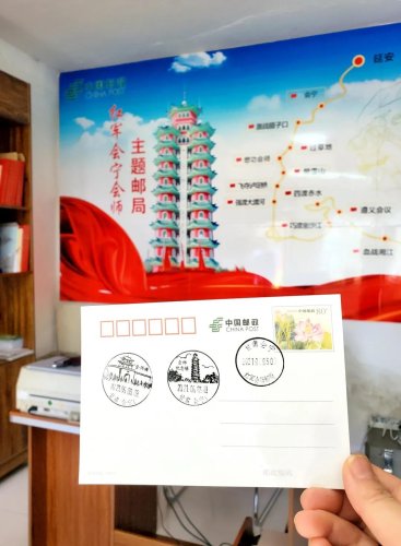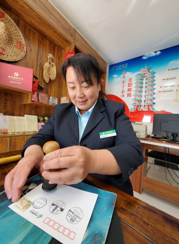 近年來,甘肅白銀市和會寧縣努力打造紅色文化,當?shù)剜]政成立了會寧會師主題郵局,開發(fā)了會師主題郵品,通過郵品宣傳、傳承會師精神。一位騎行到會寧的騎友特意來到主題郵局,在會寧會師明信片上蓋上郵戳,并將明信片投入郵筒。“在明信片上蓋上郵戳,才算是真正到會寧打卡過,看見明信片就會想起紅軍會寧會師這段歷史?!?/p>