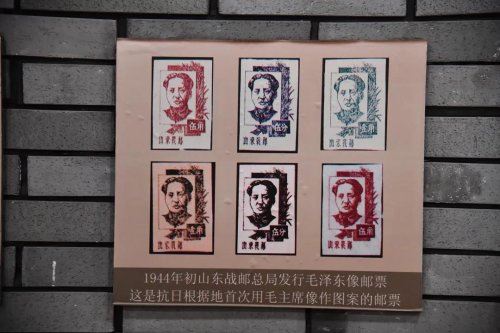 山東戰(zhàn)郵紀念館內(nèi), 首次用毛主席像作圖案的郵票,被擺放在一進門的位置,被作為鎮(zhèn)館之寶。原山東省郵電管理局史志辦公室退休干部扈德玉曾參與編輯《中國解放區(qū)郵票史·華東卷(上)》,廣泛搜集戰(zhàn)郵資料,他說,抗日戰(zhàn)爭時期,在黨中央的正確領(lǐng)導下,抗日戰(zhàn)爭取得了可喜的成績,毛澤東被人們崇敬,因此要發(fā)行這套郵票。據(jù)他向膠東戰(zhàn)郵管理局監(jiān)印員于安了解,該套郵票是在膠東的《大眾報》印刷廠印刷,不僅是中國首套,也是世界首套用毛主席像作圖案的郵票。