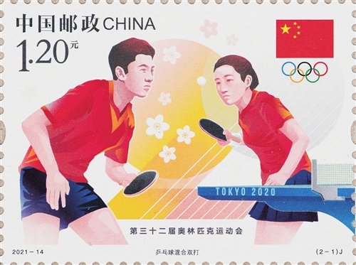 《第三十二屆奧林匹克運(yùn)動(dòng)會(huì)》紀(jì)念郵票分別表現(xiàn)了乒乓球混合雙打、男子舉重。郵票畫面展現(xiàn)了運(yùn)動(dòng)員在比賽中的精彩瞬間,藝術(shù)化地呈現(xiàn)了運(yùn)動(dòng)的拼搏與競(jìng)技之美、速度與力量之美。背景中的2021采用抽象化的幾何圖形呈現(xiàn),并點(diǎn)綴櫻花圖案,畫面虛實(shí)呼應(yīng)、充滿動(dòng)感,烘托出運(yùn)動(dòng)會(huì)熱烈的比賽氛圍。該套郵票由張強(qiáng)和胡曦設(shè)計(jì),河南省郵電科技有限公司膠版工藝印制。
