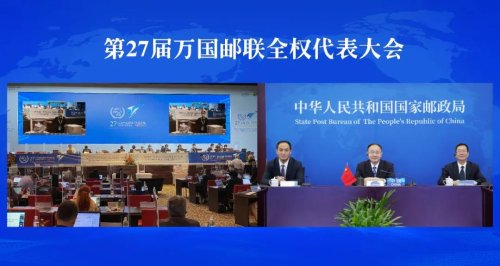 圖為中國(guó)代表團(tuán)在線出席第27屆萬(wàn)國(guó)郵聯(lián)代表大會(huì)。