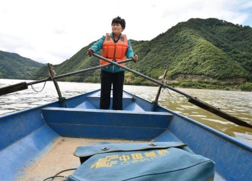 8月16日,石泉縣曾溪鎮(zhèn),趙明翠劃著小船,載著錄取通知書、網(wǎng)購包裹等郵件去往對岸?!巴rT摩托車,今天前面修路,記者同志你扶好?!币蝗~小舟在寬闊的漢江上橫渡,此時江面雖風(fēng)平浪靜,但乘船者心里卻“波濤洶涌”。當(dāng)年18歲的趙明翠第一次送郵件也是走的這條水路。