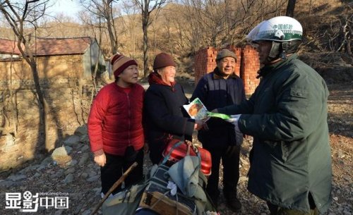 董乃軍為東峪村的李大媽(中)捎來代買的東西,李大媽很是高興,“小董這孩子太實誠了,心地也好,我這老太婆的生活指著他給我買東西了,我都離不開他了?!?。因為山里沒有郵政業(yè)務點,他經常在村民的家門口現場辦理郵寄、匯款等業(yè)務,并且還為不便出山的老人代買藥物或用品,把點滴溫暖送給山村的人們,受到村民的交口稱贊。