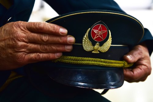 老人撫摸著珍藏多年的這頂大沿帽,滿懷深情向來訪者講訴他當(dāng)年的故事