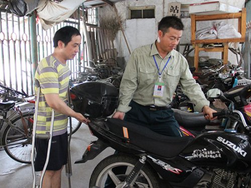 第一次看到孫友誼時,他被眼前的景象震撼了。那時孫友誼正杵著雙拐,雙腳艱難的在車棚里挪動,竭盡全力地將自行車、電瓶車擺放整齊。看到這一幕后,他果斷地將投遞電瓶車停在了一邊,默默地走進車棚,用了幾分鐘時間幫他把車輛擺放整齊后,就默默地騎著車走了。