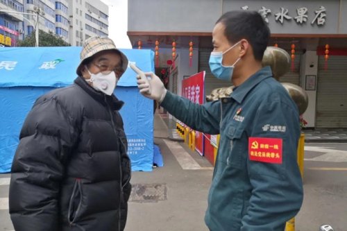 王國(guó)華為社區(qū)居民測(cè)量體溫