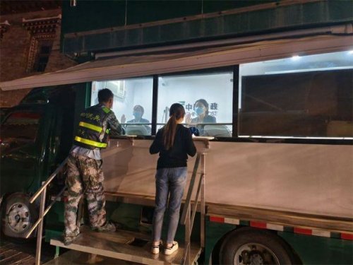 “網(wǎng)絡(luò)連上了,設(shè)備弄好了,燈亮起來(lái)了!”當(dāng)天16時(shí),經(jīng)過(guò)近2個(gè)小時(shí)趕路,流動(dòng)服務(wù)車開到了磨西鎮(zhèn)貢嘎廣場(chǎng)。在甘孜州縣兩級(jí)應(yīng)急救災(zāi)指揮部、海螺溝管理局的幫助下,磨西郵政支局和趕來(lái)支援的甘孜州郵政分公司員工、電力公司技術(shù)員、消防官兵一起,迅速完成場(chǎng)地搭建和設(shè)備調(diào)試,為流動(dòng)服務(wù)車正式營(yíng)業(yè)做好了準(zhǔn)備。