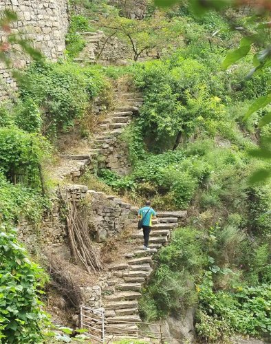“記憶中,我上初中時才第一次走古道下山,到鄉(xiāng)里上中學(xué)?!睋?jù)張海根介紹,岳家寨村群山環(huán)繞,過去僅靠一條懸崖邊的古道與外界相連。村民靠肩背膀挑把山貨運(yùn)下山,再把生活物資運(yùn)上來。