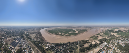 遠(yuǎn)眺藍(lán)天白云下寬闊的黃河水面