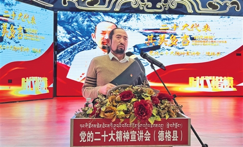 近日,黨的二十大代表、“時代楷?!薄拇ㄊ「首慰h郵政分公司駕押組組長其美多吉回到家鄉(xiāng)德格縣,宣講黨的二十大精神。其美多吉結(jié)合自己的奮斗經(jīng)歷和切身感受,談時代變化、看家鄉(xiāng)發(fā)展、頌黨的恩情,把黨的二十大精神送到了家鄉(xiāng)父老的心窩里,現(xiàn)場頻頻響起熱烈的掌聲?,F(xiàn)場聆聽宣講的300余名干部職工、農(nóng)牧民群眾、師生代表紛紛表示,將繼續(xù)堅(jiān)定不移聽黨話、感黨恩、跟黨走,踔厲奮發(fā),勇毅前行,在新征程上做出更大的業(yè)績。