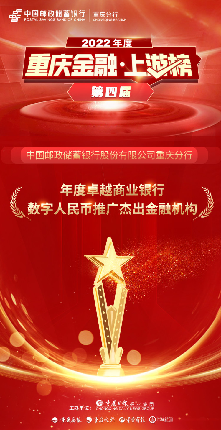 備受業(yè)界關(guān)注的2022年“重慶金融·上游榜”評(píng)選結(jié)果在今天正式揭曉。中國(guó)郵政儲(chǔ)蓄銀行(以下簡(jiǎn)稱“郵儲(chǔ)銀行”)重慶分行憑借年度市場(chǎng)表現(xiàn)與行業(yè)影響力,榮膺“年度卓越商業(yè)銀行”綜合大獎(jiǎng)。同時(shí),該行扎實(shí)穩(wěn)妥推進(jìn)數(shù)字人民幣試點(diǎn)工作,在場(chǎng)景應(yīng)用、對(duì)公及個(gè)人錢包數(shù)量等方面堅(jiān)持?jǐn)?shù)字化轉(zhuǎn)型,積極探索創(chuàng)新斬獲“數(shù)字人民幣推廣杰出金融機(jī)構(gòu)”特別獎(jiǎng)。