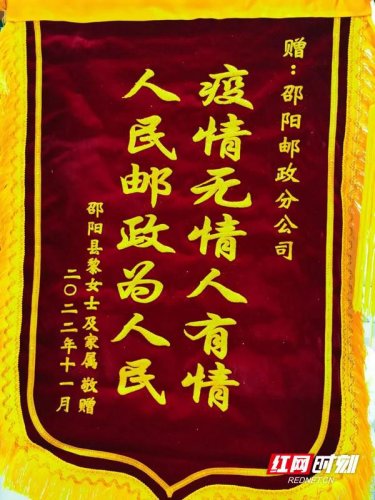 日前,湖南省邵陽市郵政分公司收到一個特殊的包裹,里面緊裹著一面鮮紅的錦旗,上面寫著“疫情無情人有情,人民郵政為人民”。