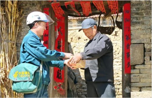 于彥富給張家莊村村民任明海送來包裹。