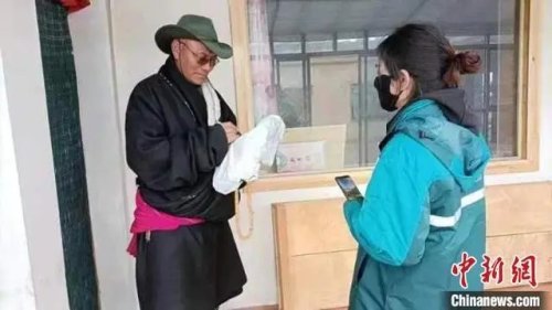圖為麥桃吉將快遞送到民眾手中。(資料圖,中國郵政集團(tuán)有限公司甘肅省瑪曲縣分公司供圖)