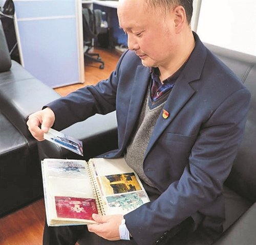 韓新剛翻著相冊(cè),回憶軍旅生活。