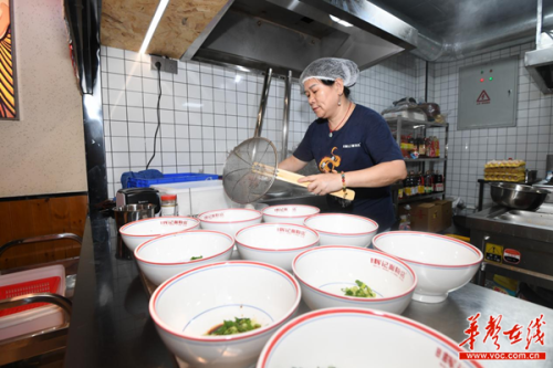 “是這里嗎?”“是這里,你看老板就知道!”在輝記面粉店,每天都有這樣的對話出現(xiàn),來的,大多是慕名而來的游客。“網(wǎng)紅長沙”的影響助力,老板周瞰“有腔調(diào)”的餐飲特色,讓輝記三年連開四店,平均每天賣出2~3千碗粉,周瞰本人也成了長沙米粉圈內(nèi)著名的“星城粉少”。
