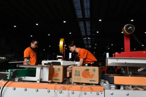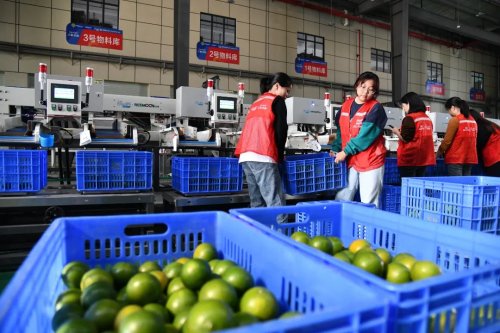 “在我們這條20多米的分揀線上,可以根據(jù)客戶要求設(shè)置果徑、重量等參數(shù),精準(zhǔn)篩選每一枚水果,大大提高了分揀效率?!比妻r(nóng)業(yè)副總經(jīng)理劉翔介紹說(shuō)。場(chǎng)地另一側(cè),剛剛分揀好的水果被放上皮帶傳送機(jī),郵政工作人員隨即將其裝車發(fā)往全國(guó)各地。