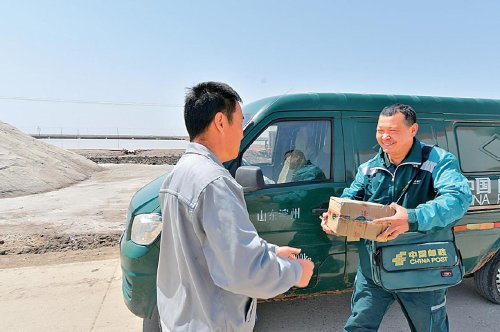 濱州位于山東北部,因?yàn)l臨渤海而得名。濱州市無棣縣北部沿海地區(qū)自古以鹽為業(yè),全縣40多萬畝鹽田星羅棋布。這里的4個(gè)郵政網(wǎng)點(diǎn)、36個(gè)自提點(diǎn)、23個(gè)便民站,服務(wù)45個(gè)村、72家企事業(yè)單位,包括鹽場工人、漁民等共計(jì)12.2萬人。
