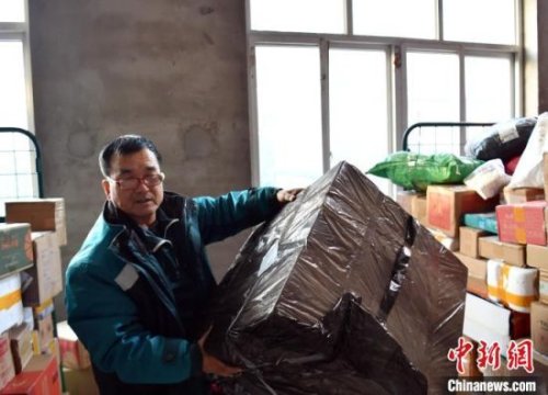 1月25日,楊小合正在搬運將要投遞的郵件。韓冰 攝