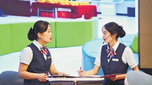 參賽選手進(jìn)行營(yíng)業(yè)話術(shù)情景模擬?! 鮿⒎啤z