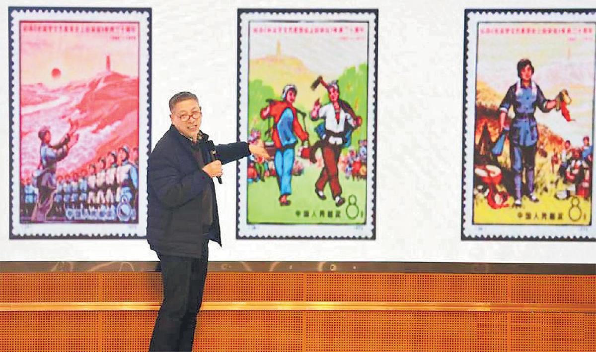 由“南湖小船”到“復興號巨輪”,從“春天的故事”到“新時代華章”……方寸之間,傳承紅色基因。王洪新以郵票為載體,串聯(lián)起黨的百年奮斗史,講解了郵票設計的巧妙之處及其蘊含的歷史故事與深意,引導師生知史愛黨、知史愛國。