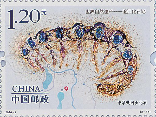 4月18日,《世界自然遺產(chǎn)——澄江化石地》特種郵票將發(fā)行。該套郵票一套3枚,郵票圖案名稱分別為“中華微網(wǎng)蟲化石”“環(huán)飾蠕蟲與吸盤古宿蟲共生化石”“延長撫仙湖蟲化石”。