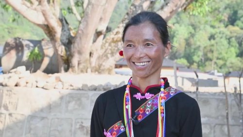 跟著取好快遞的村民鐘小蘭的腳步,記者走進(jìn)她年初剛搬進(jìn)的兩層新家。自2022年4月現(xiàn)代化邊境幸福村建設(shè)項(xiàng)目啟動(dòng)以來(lái),班角老寨的村民們?cè)诋?dāng)?shù)卣畮椭录娂娚w起了新房。站在鐘小蘭家二層放眼望去,國(guó)境線另一側(cè)的山巒清晰可見(jiàn),感受到記者一行的好奇,去過(guò)緬甸的鐘小蘭跟記者分享了自己的見(jiàn)聞。頓了頓,她沖記者展開(kāi)幸福的笑容:“現(xiàn)在村里水電、網(wǎng)絡(luò)、取快遞都很方便,我感覺(jué)生活在中國(guó),真的很幸福!”