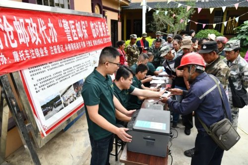 郵路通達(dá)抵邊村,便民服務(wù)也隨之深入抵邊村。2023年7月,瀾滄縣郵政分公司與當(dāng)?shù)亟还懿块T(mén)聯(lián)合啟動(dòng)“警醫(yī)郵?!表?xiàng)目,在抵邊村設(shè)置臨時(shí)服務(wù)點(diǎn),為村民們現(xiàn)場(chǎng)辦理摩托車(chē)滅失注銷(xiāo)登記、保險(xiǎn)繳納、車(chē)輛免檢、證照檢審等業(yè)務(wù),獲得了村民們的熱烈歡迎和一致好評(píng)。