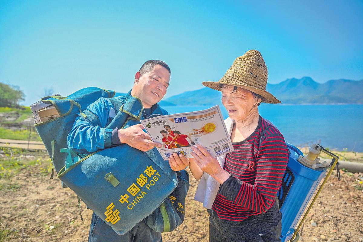 村民簽收郵件?!⒘P(yáng) 攝