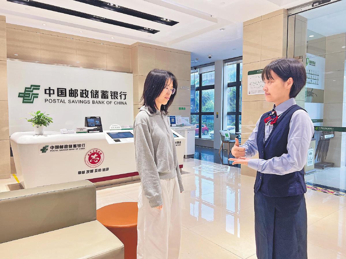 去年10月,有兩位聽障客戶來到網(wǎng)點(diǎn)辦理儲蓄卡掛失。那天正好是包秦琳值班,她用準(zhǔn)確熟練的手語為客戶服務(wù)。看到包秦琳會手語,客戶原本焦慮的情緒緩解了許多。包秦琳不僅快速幫助客戶辦理完掛失補(bǔ)卡,還教會他們使用手機(jī)銀行辦理業(yè)務(wù)。臨走時,客戶用手語稱贊道:“謝謝,你的服務(wù)真棒,郵儲銀行真棒!”在包秦琳的帶動下,浙江省分行已建立了一支20余人的手語專員隊(duì)伍,他們每天堅(jiān)持練習(xí)銀行常用手語,讓更多特殊客戶也能享受到安全、便捷、暖心的金融服務(wù)。