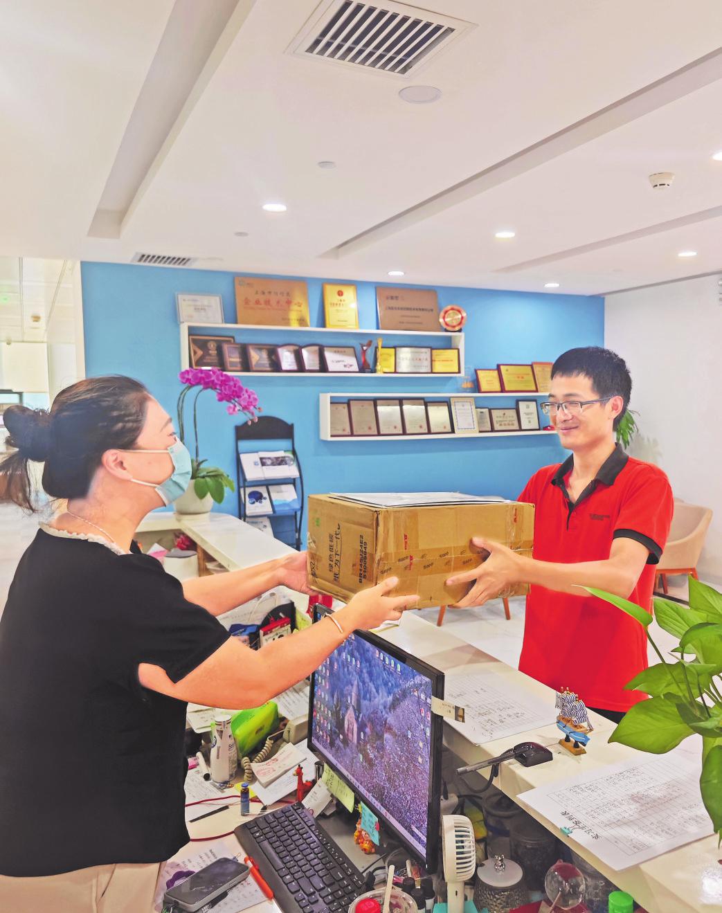 徐匯區(qū)分公司員工上門攬收退換貨郵件。□高道?!z