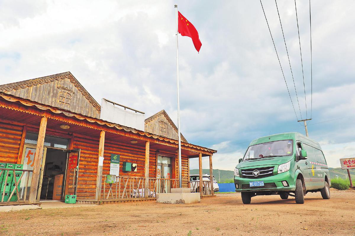 沿著額爾古納河一路前行,每隔一段距離就能看到醒目的標(biāo)識牌——“請勿越界”。當(dāng)一面鮮艷的國旗映入眼簾時,采訪組來到了此行的目的地——八卡村。八卡村地廣人稀、位置偏遠、交通不便,在邊境村通郵前,村民只能自行到100多公里外的額爾古納市取郵件,或由村民相互捎帶再到周邊鄉(xiāng)鎮(zhèn)去領(lǐng)取,費時費力,極不方便。如今,呼倫貝爾市郵政分公司在村口的曉瑩便利超市疊加了便民服務(wù)站點??匆娻]車抵達,老板吳華北高興地跑出來接郵件。他笑著說:“現(xiàn)在村民來店里買東西時,就能順便取走包裹。郵政服務(wù)為老百姓帶來了很大的方便!”