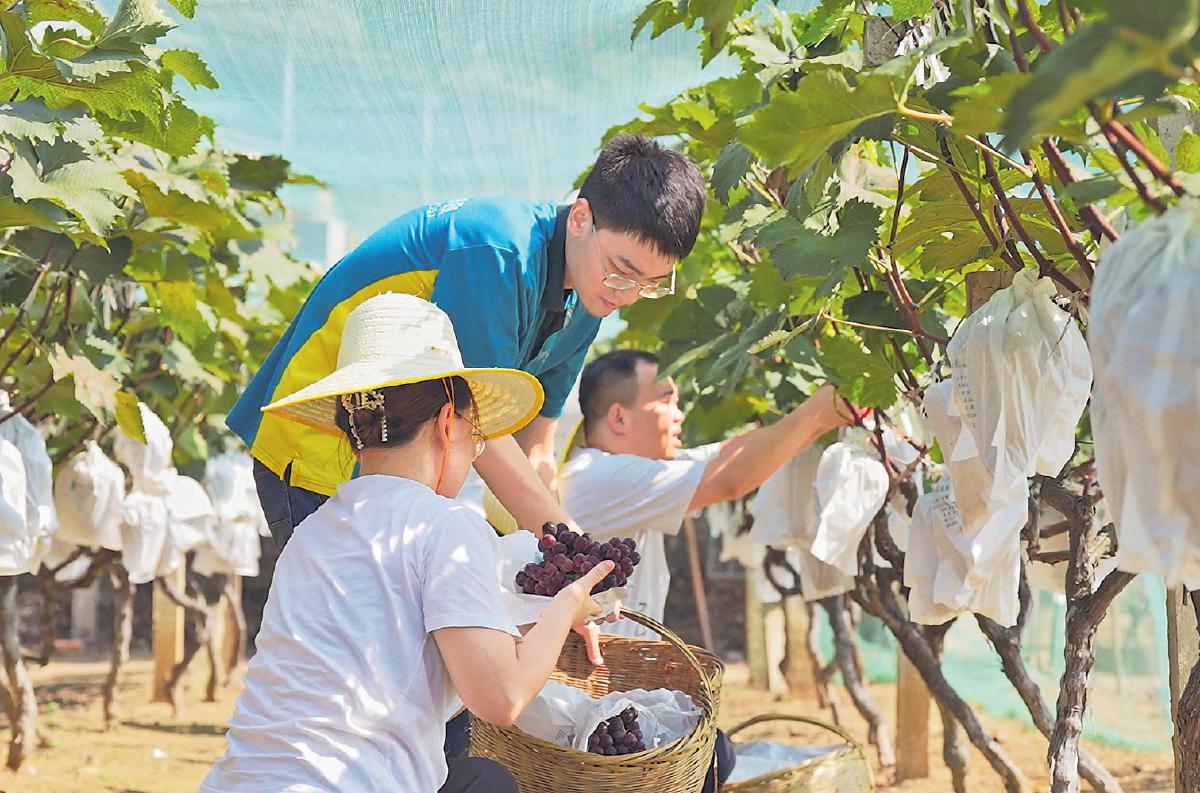 日前,湖北省荊門市郵政分公司助農(nóng)服務(wù)隊(duì)來到漳河鎮(zhèn)京河葡萄種植基地,幫助一位身體有殘疾的種植者采摘、裝箱、打包、運(yùn)輸葡萄,并通過“基地直播+社區(qū)團(tuán)購(gòu)”的方式,助銷葡萄1300多斤。據(jù)悉,幫扶對(duì)象劉師傅是一位50多歲的殘疾人,因身體活動(dòng)受限,自家種植的葡萄出現(xiàn)滯銷。荊門市分公司通過走訪了解到這一情況后及時(shí)伸出援助之手,解了劉師傅的燃眉之急,受到當(dāng)?shù)厝罕姷暮迷u(píng)。