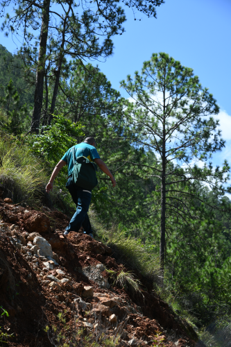 剛到木里時,采訪組曾跟隨何勇和王銀海從王順友故居出發(fā),沉浸式體驗(yàn)了一段王順友的“馬班郵路”,曾經(jīng)的郵路已被茂密的植被覆蓋,但沿著那些深深淺淺的腳印,依然能找到路的蹤跡。山路陡峭且泥濘,沿途青岡草的荊棘刺痛皮膚,記者僅走了2公里就氣喘吁吁,但遠(yuǎn)處還有海拔4192米的查爾瓦梁子、水流湍急的雅礱江、懸崖邊的“九十九道拐”需要穿越。
