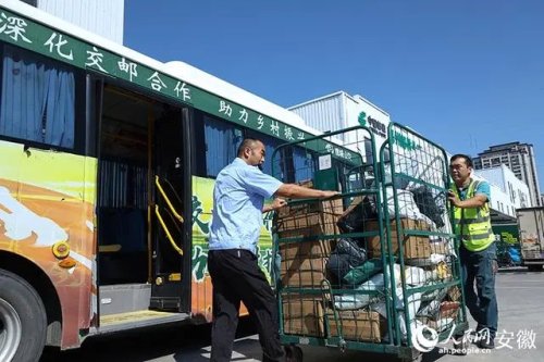 每天上午9時(shí)許,位于譙城區(qū)的中國郵政亳州郵件處理中心內(nèi),不少公交車會(huì)陸續(xù)開進(jìn)來。這些車身有著“交郵融合”字樣的公交車,就是郵政快遞下鄉(xiāng)的新“郵車”。